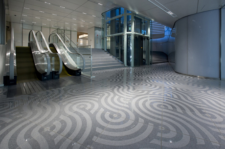 Breeze Towerでは野老さんのベースともいえるパターンを用いて、水の軌跡をまるで運河の遺跡のように地に刻む作品をパブリックアートとして実現しましたが、ICCで出品されている作品「フラットスコープスケープMJ」や「ガラクロックワークス」はまた違う、大変興味深いものです。 ついここでどんな作品か話してしまいたくなりますが・・・