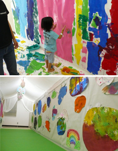 企画してくださったワークショップにおいて、普段苦しい治療や不自由な生活の中を強いられながら入院している子供たちが思いっきり絵をかいている姿は、本来の子供らしさをみたような気がしたというスタッフのアンケートの言葉がありました。スタッフで考えたお絵かき時間ではできない発想と行動力をアーティストや学生さんたちが実施してくれたことで、子供たちもそして親もスタッフも気づかされたことがあったように思います。ワークショップ後に入退院をくりかえしている子供の中に、1年後も壁画を眺めては、これは「私が描いたのよ」とお話をしている子供もいます。楽しかった記憶は、残っているようにおもいますが、ワークショップを経験していない子供たちにとっては、他のアートと同じであり、月日の経過とともに、ワークショップの思い出は、うすれていくと思われます。こうした活動が続いていくことが大事なのかもしれません。