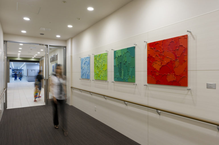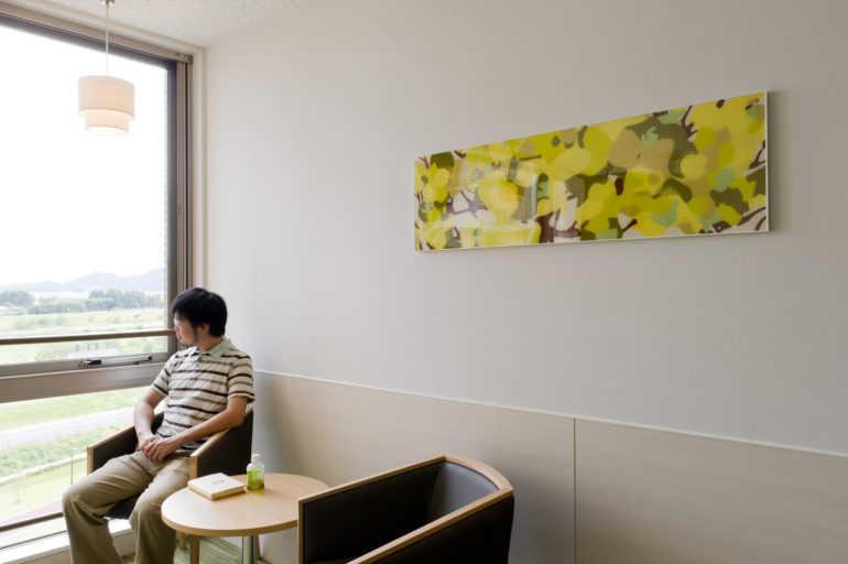 文化遺産や豊かな自然環境に恵まれ、独特の歴史と文化を築き、紡いできた町、足利。足利赤十字病院は地域の将来を担い、質の高い医療を提供し続ける中核病院となるべく、新病院建築の運びとなった。来院者をはじめ、勤務するスタッフなど利用者すべての方々にとっての快適性を重視したこの病院。人々への心配りと地域への深い愛情を表現する病院からのメッセージとして、ホスピタルアート全体に足利の町を取り巻く環境や歴史文化のエッセンスを取り入れ、公共スペースから個室内、またスタッフの勤務する医局内などを含む病院内各所にアートを散りばめ、地域の人々に希望を与える「みちしるべ」とした。