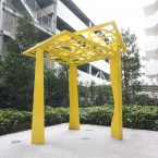 敷地のコーナーに配置された常松大純の作品『SKY』は大空にのびて空を映す地域のランドマークとなり、アートベンチとして座ることもできる竹田康弘の作品『ごきげんよう!』はエントランスで住民を迎え、都市空間に活き活きとした彩を添えながら集いの場を形成している。